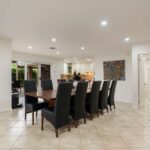 • Living Space: A grand entry hallway, formal lounge and dining rooms, a secondary upstairs sitting room, and an open-plan kitchen and meals area.