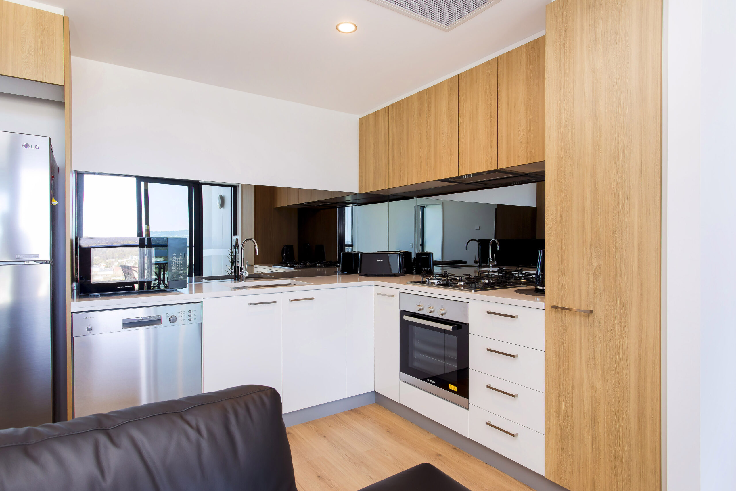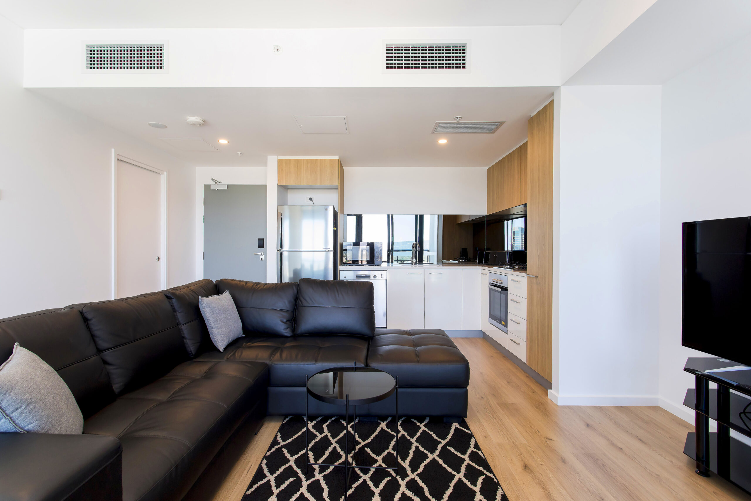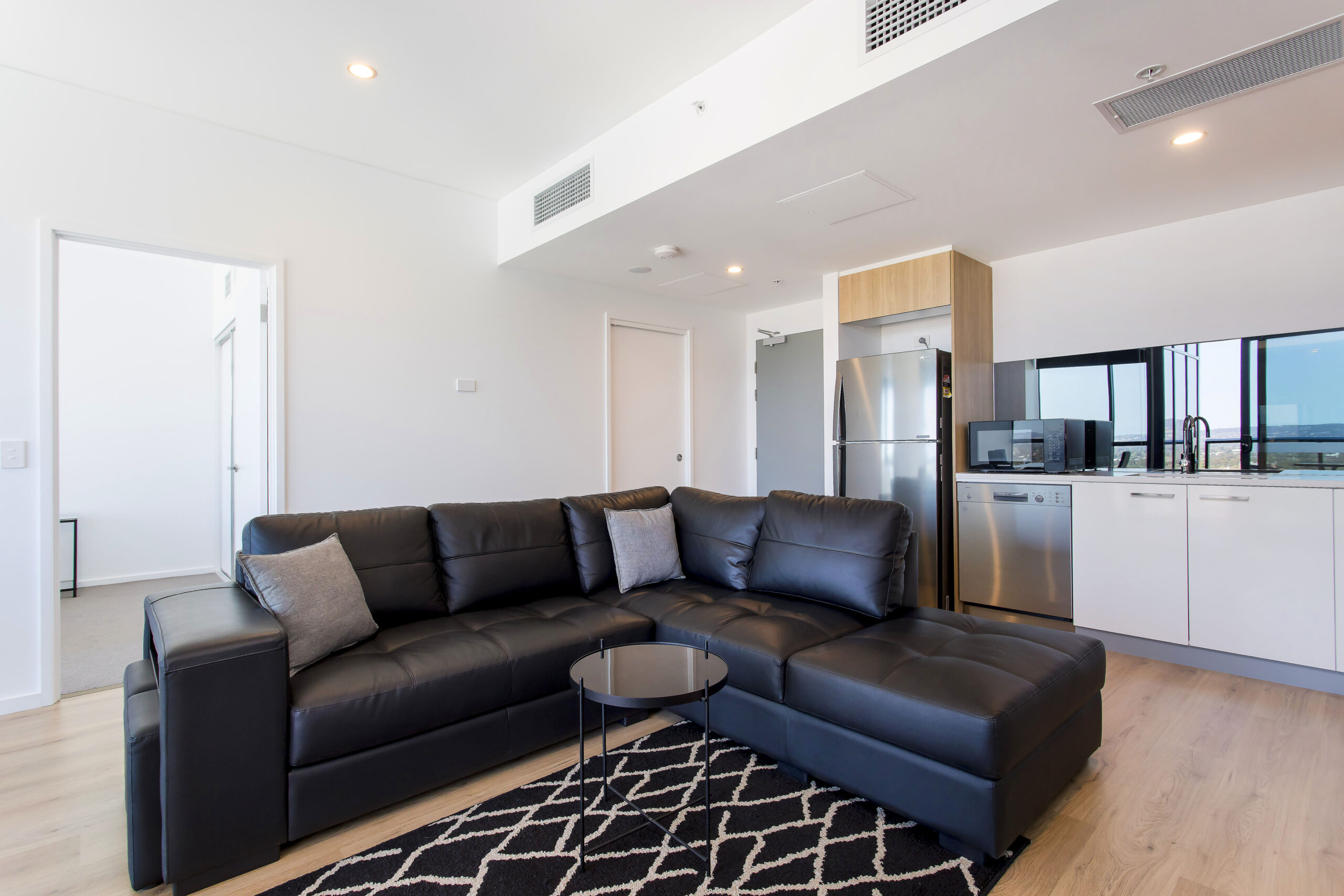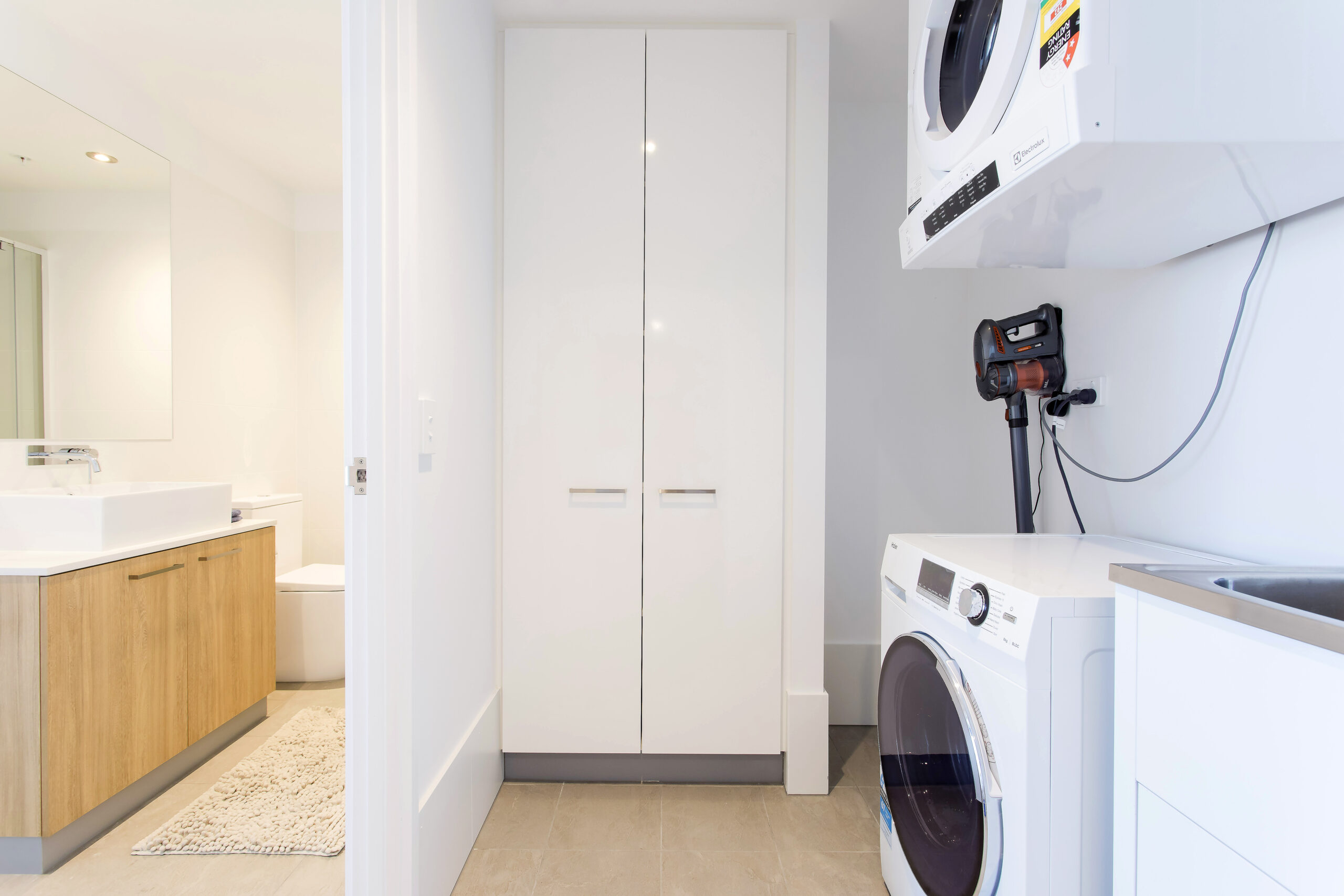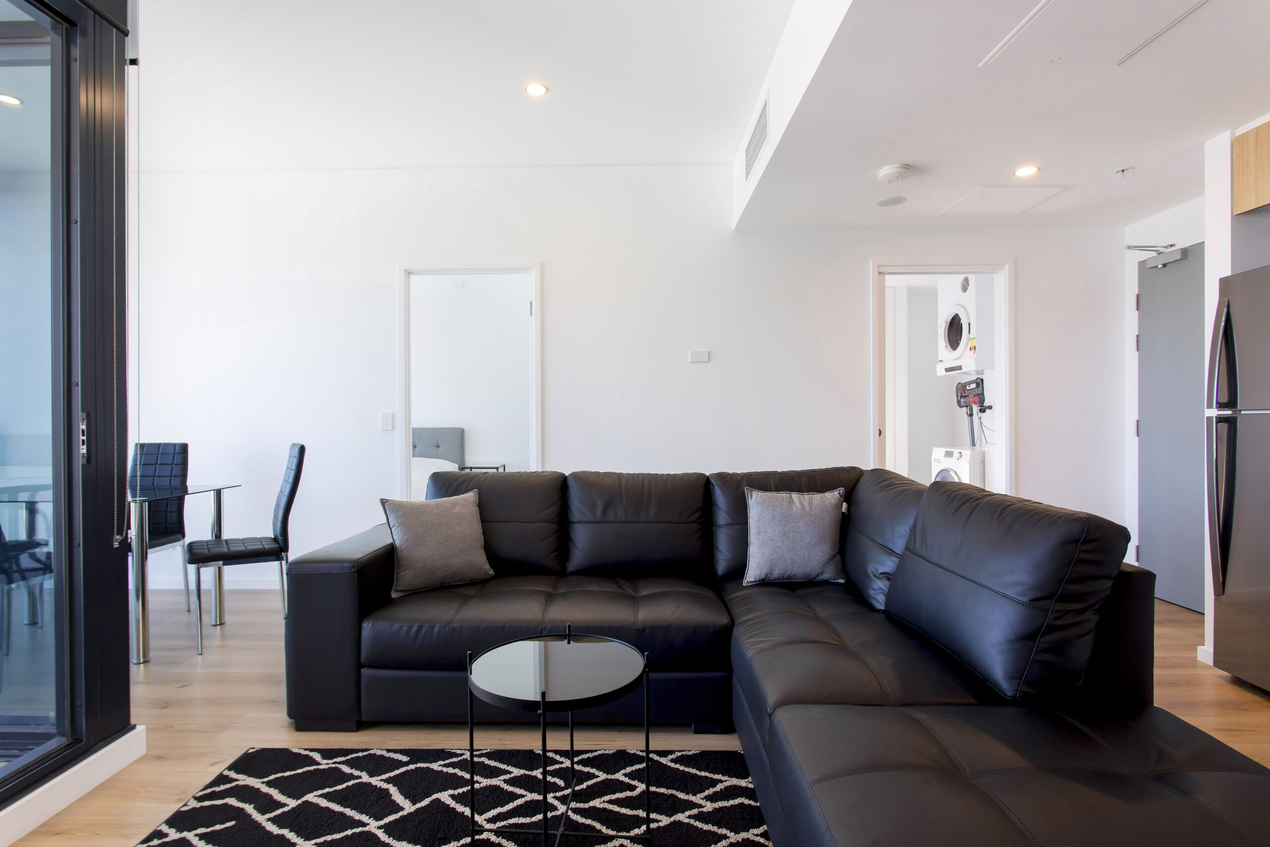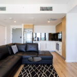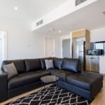 This apartment comes furnished with no compromise on class. Featuring quality appliances in the kitchen finished with soft close cabinetry, stone bench tops and gas cooking. The furnishings give you a sense of luxury with the leather lounge suite and divine glass dining setting plus deluxe queen master bed. There is no need to move from your sensational apartment to complete your washing with the fully equipped laundry inclusive of washer and dryer. Whole of facility accessed through personal apartment swipe card.