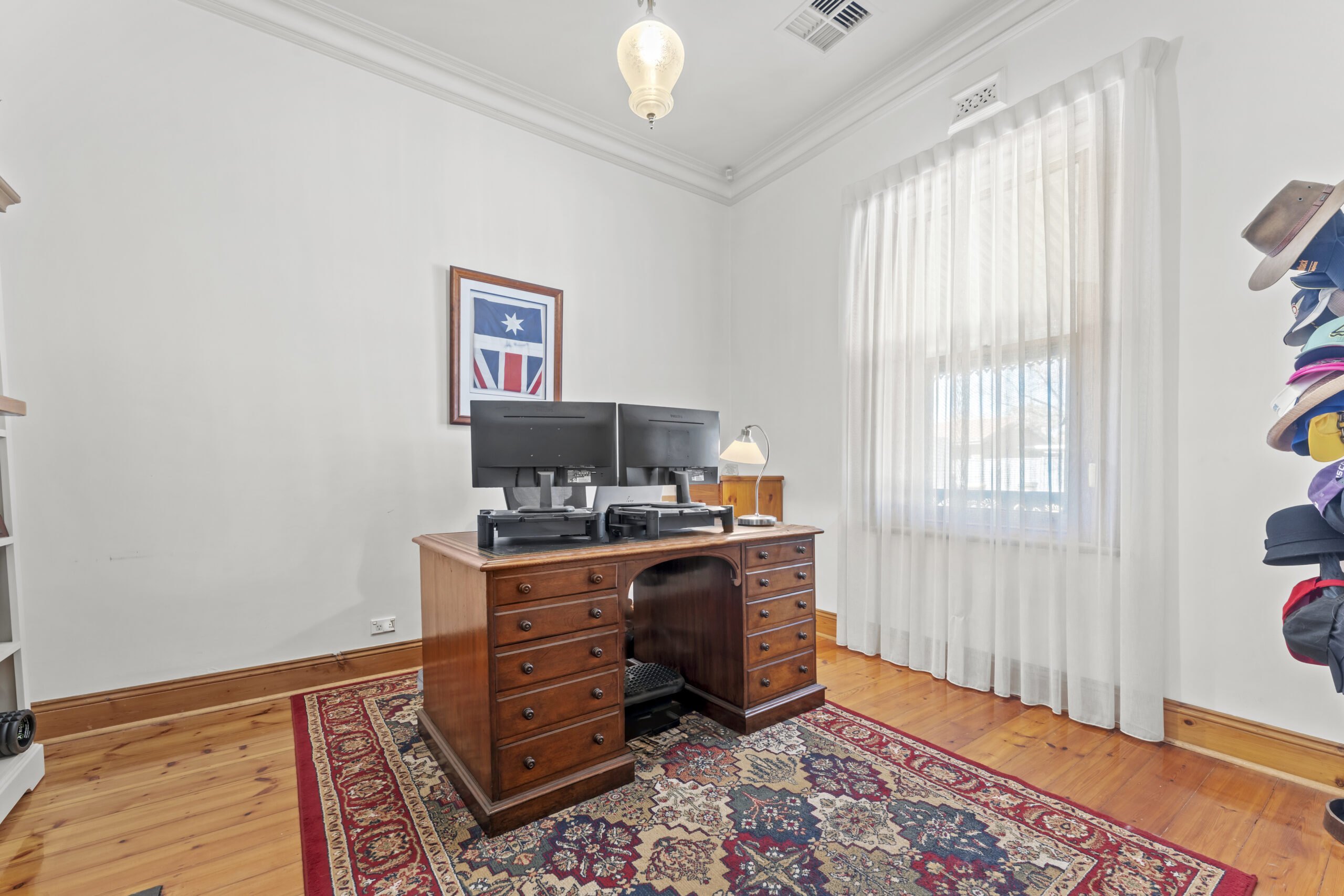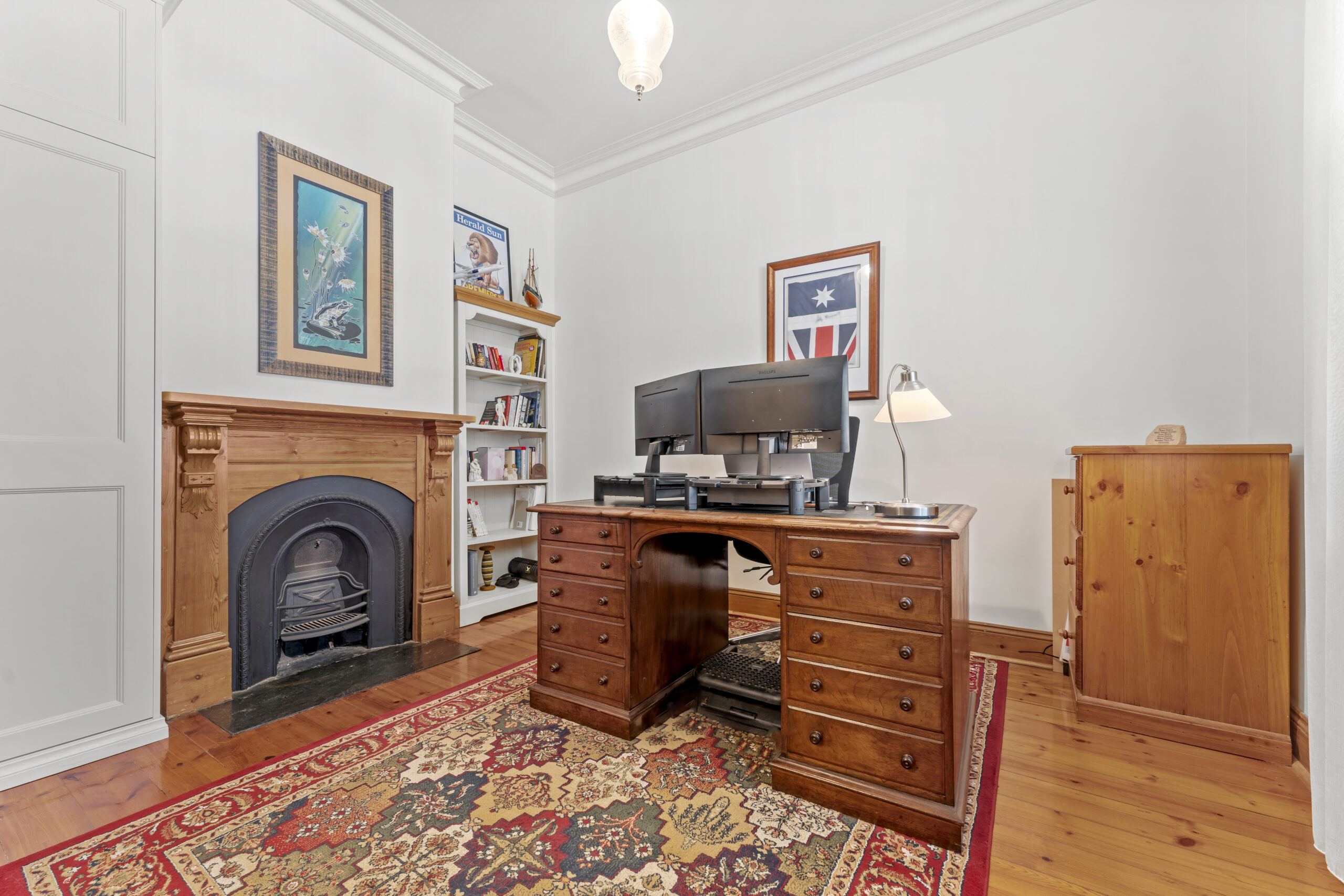 The home includes 4 large bedrooms with robes to the front of the residence all with open fireplaces, ornate ceilings and traditional fittings and fixtures. The main bathroom of the home is beautiful with a free-standing tub, large vanity, generous shower area and quality heritage style tiling and etched window feature.